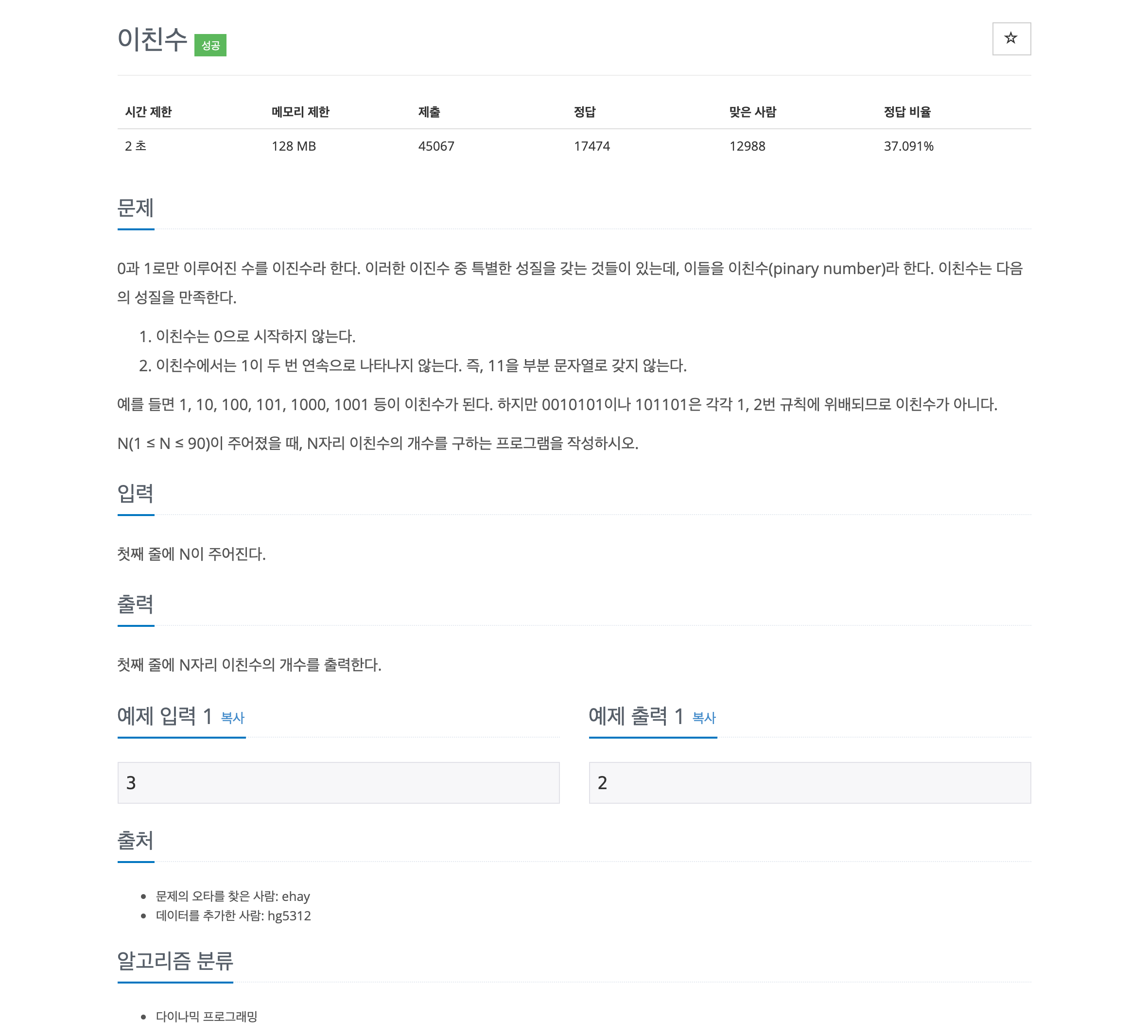 N = 5 μΈ κ²½μ°λ 10000, 10001, 10010, 10100, 10101 λ€μ― κ°μ§μ΄λ€. => 5