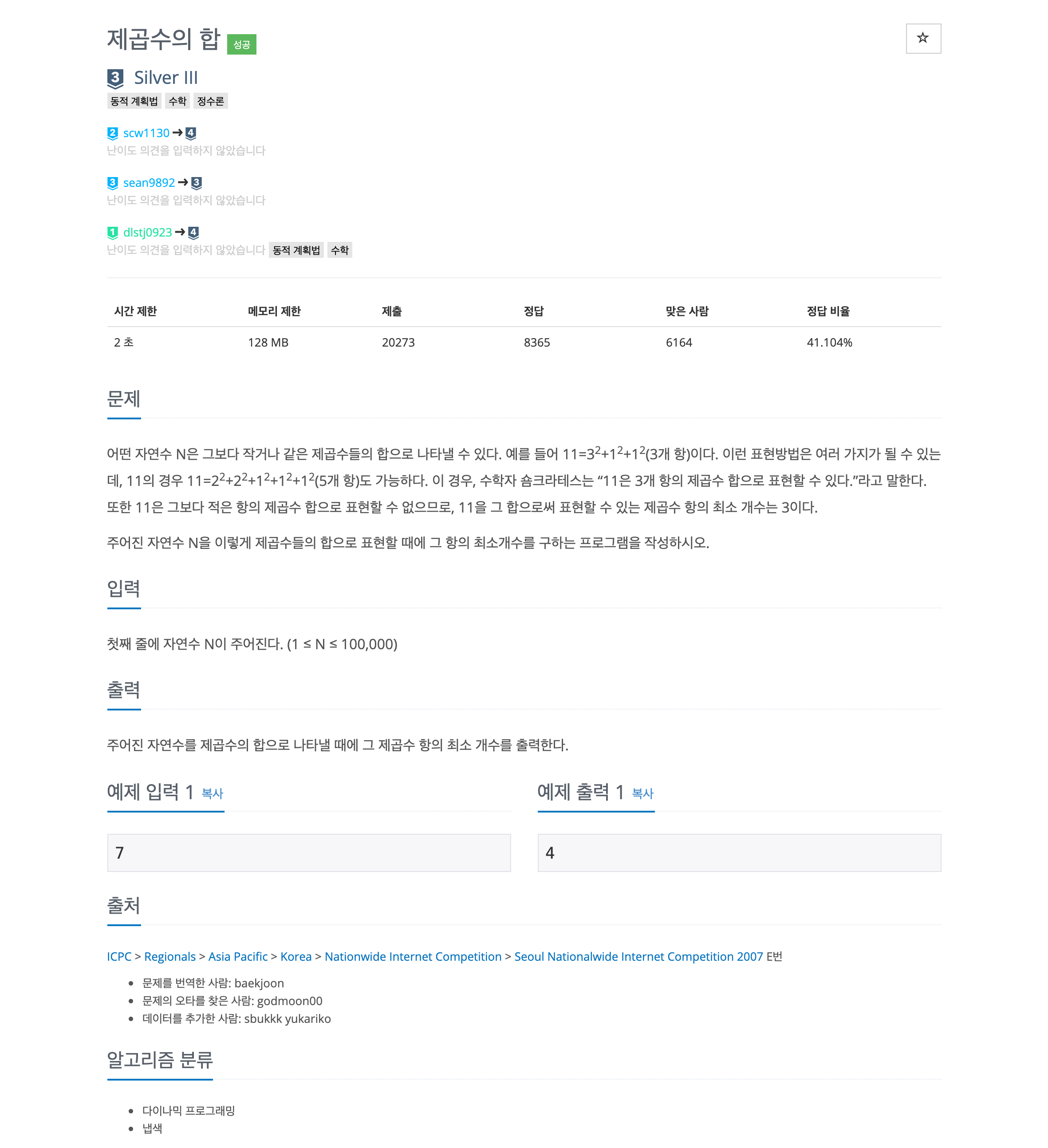 1. μ–΄λ–€ μžμ—°μˆ˜ N 은 그보닀 μž‘κ±°λ‚˜ 같은 μ œκ³±μˆ˜λ“€μ˜ ν•©μœΌλ‘œ λ‚˜νƒ€λ‚Ό 수 μžˆλ‹€.