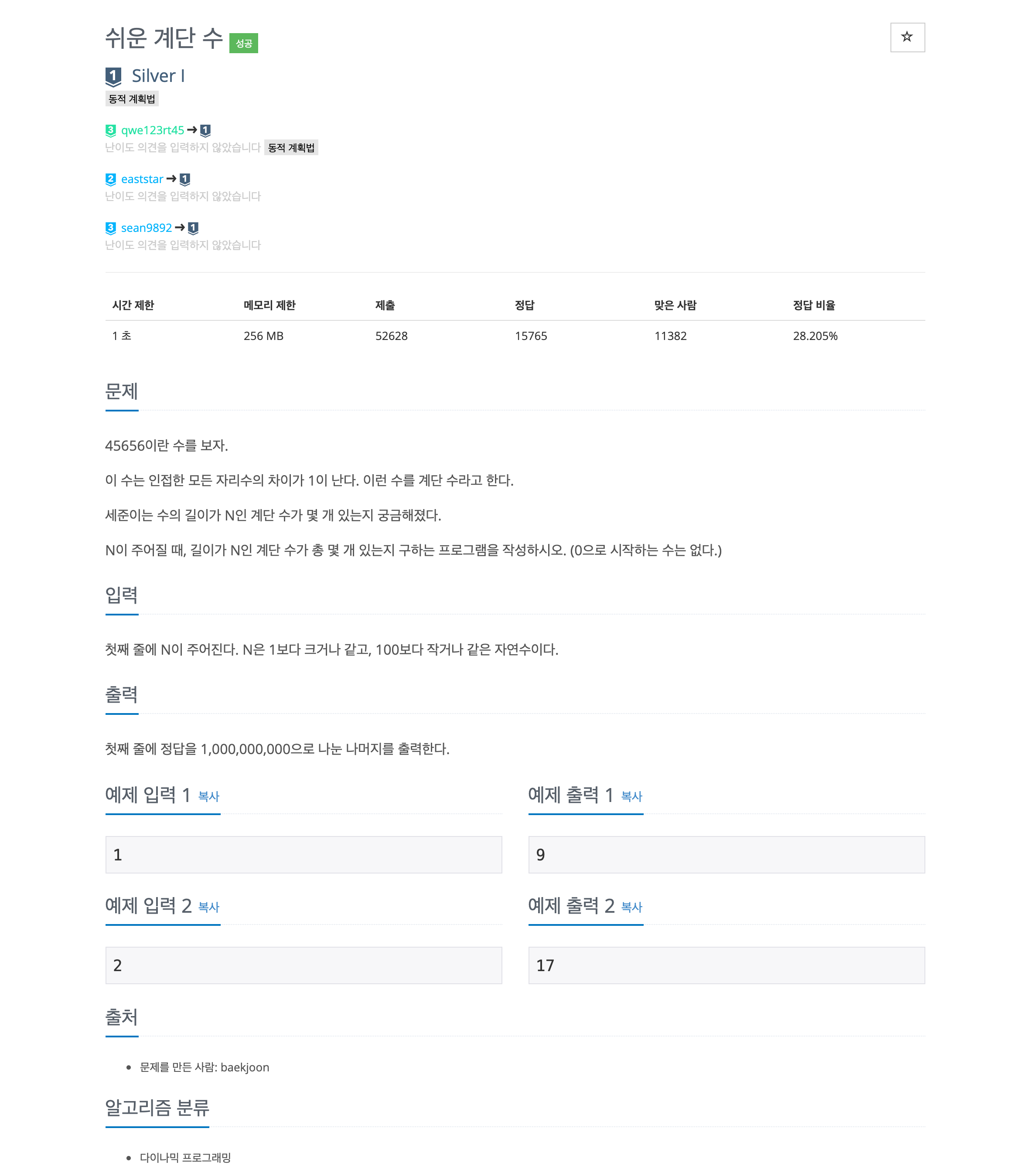 N = 1 ์ธ ๊ฒฝ์ฐ, 1, 2, 3, 4, 5, 6, 7, 8, 9 ๊ฐ ๊ฐ๋ฅํ๋ค.