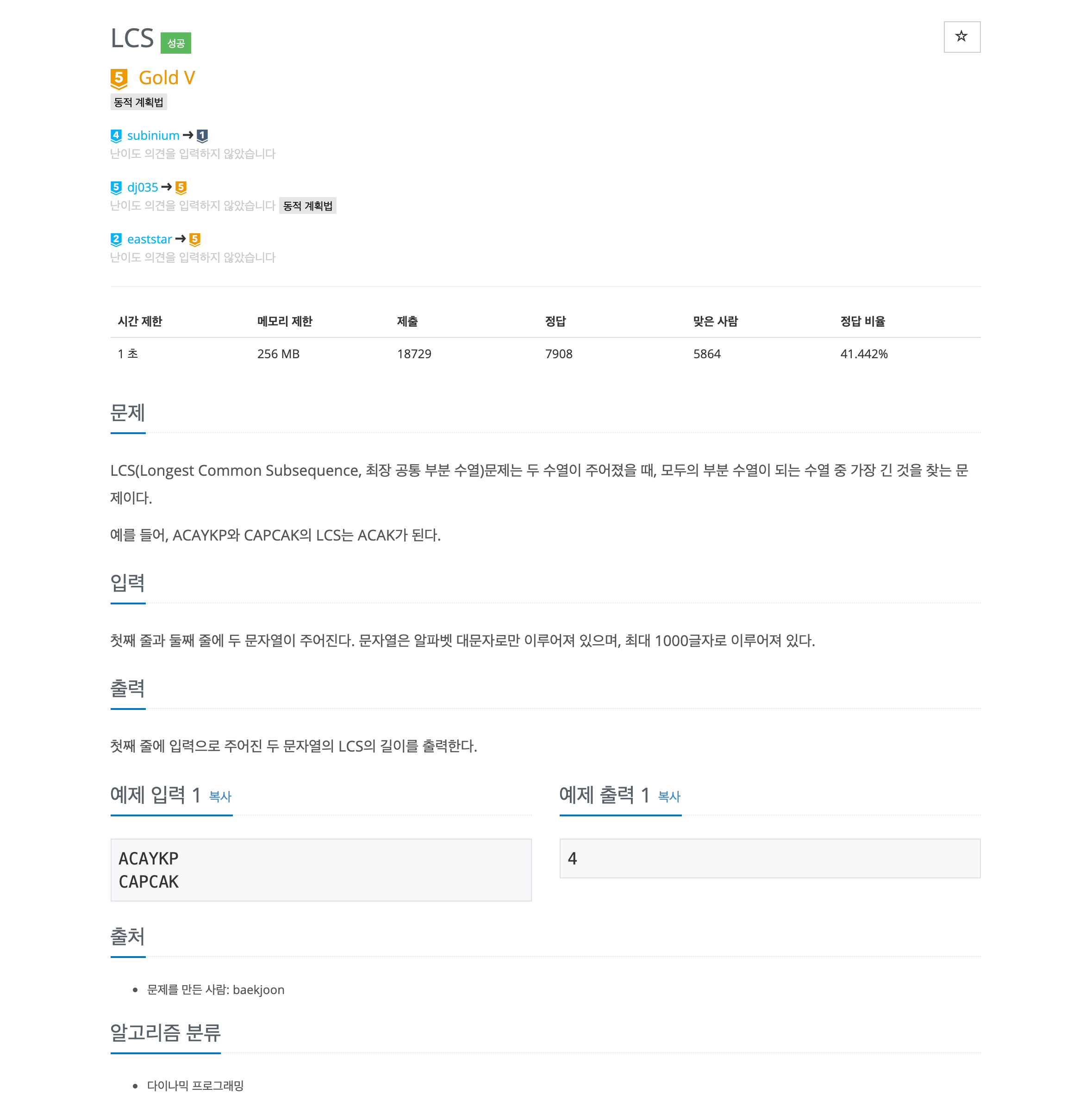 ๋งŽ์ด ์•Œ๋ ค์ง„  Longest Common Sequence(LCS)  ๋ฌธ์ œ์ด๋‹ค.