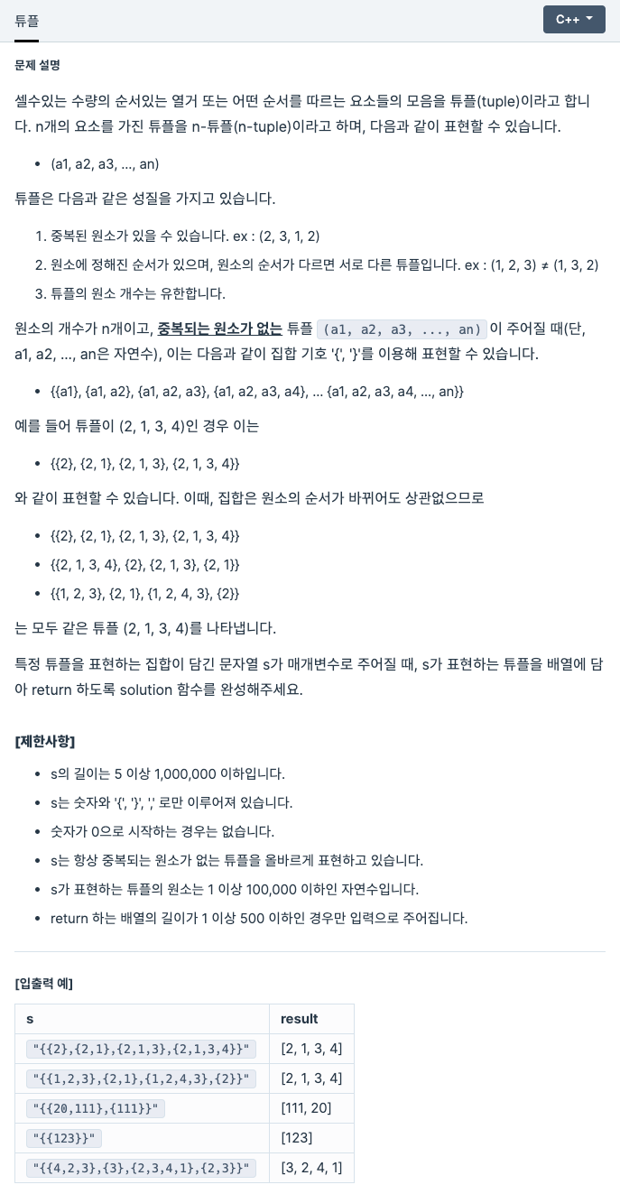 s๊ฐ ํํํ๋ ํํ์ ๋ฐฐ์ด์ ๋ด์ return ํ๋๋ก solution ํจ์๋ฅผ ์์ฑํด์ผ ํ๋ค.