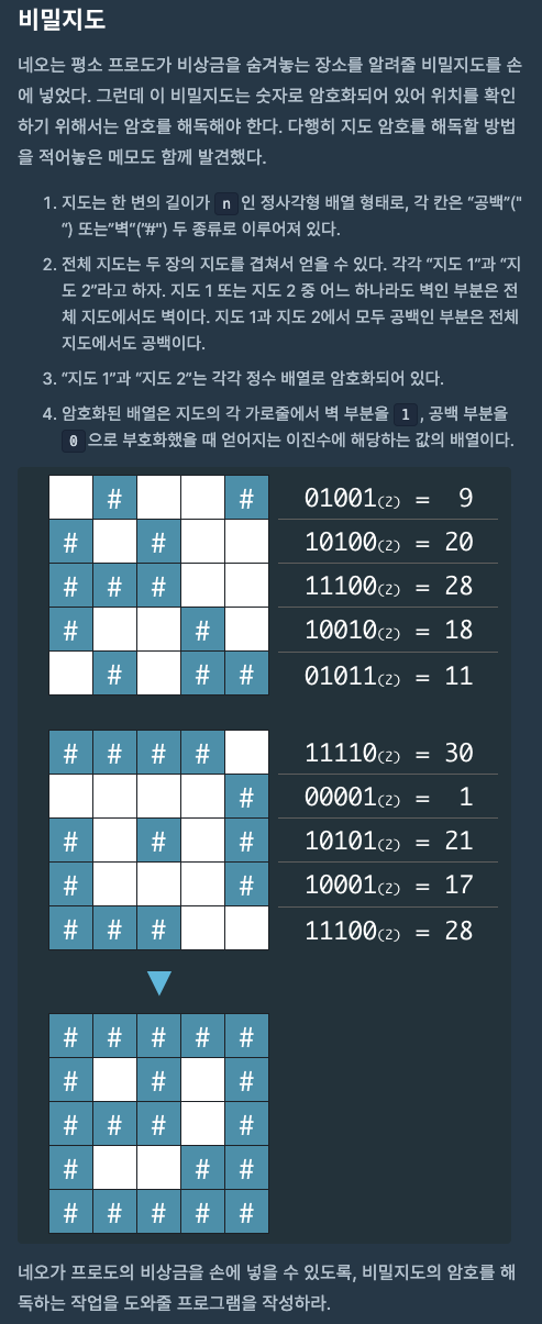 int(binary_arr1[binary_arr_idx][str_idx]) or int(binary_arr2[binary_arr_idx][str_idx])) else " "
