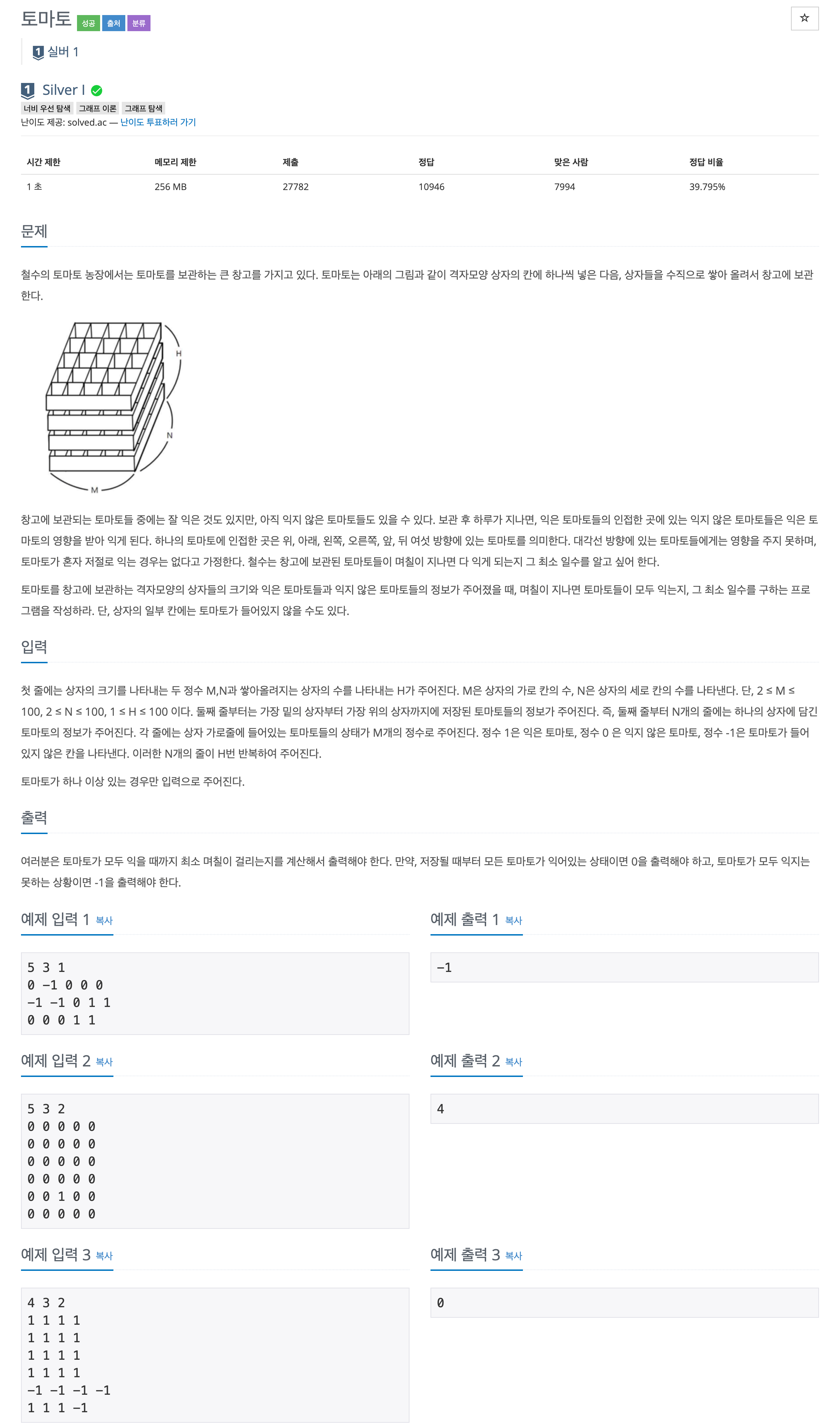 arr[๊น์ด][๊ฐ๋ก][์ธ๋ก] ์ธ ๊ฒ์ ์ ์ํ์ฌ์ผ ํ๋ ๋ฌธ์ ์ด๋ค.