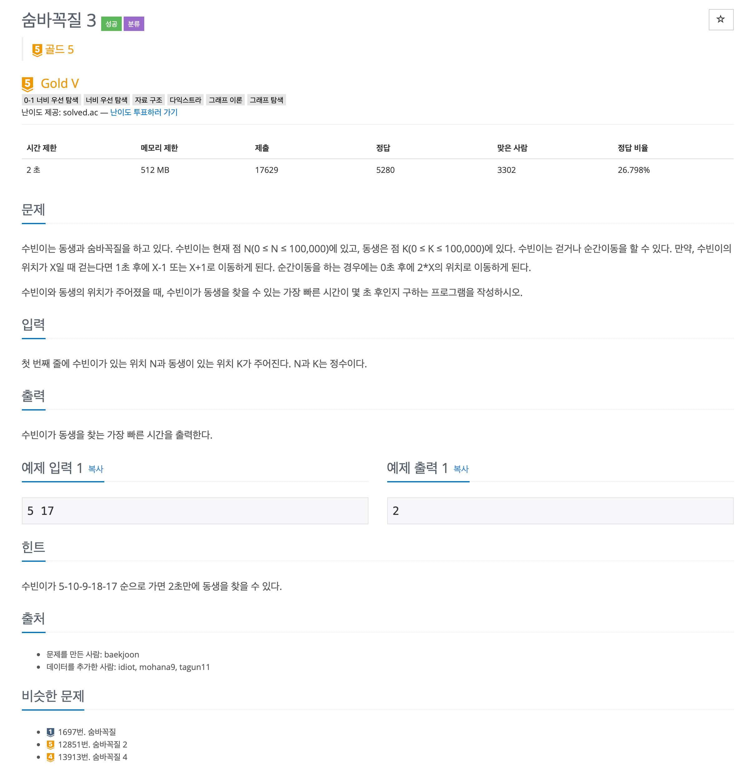 | [BOJ] λ°±μ€ 12851 μ¨λ°κΌμ§ 2 / BFS (0) | 2021.01.12 |
