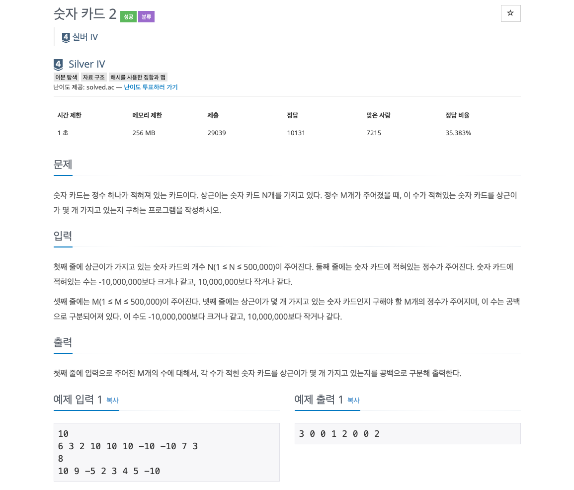 | [BOJ] ๋ฐฑ์ค 10815 ์ซ์ ์นด๋ / ์ด๋ถํ์ (0) | 2021.02.09 |